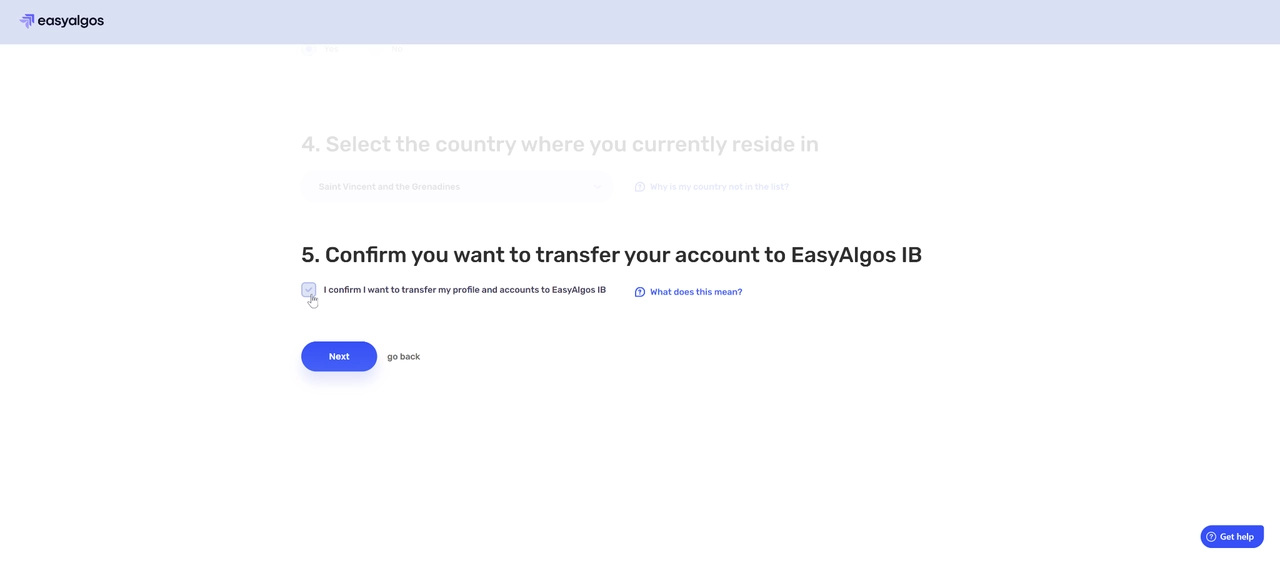To provide you with free access to EasyAlgos AI, we’ll need to link your broker account to our IB (introducing broker), so we can earn rebates from your trading volumes. No mark-ups or extra fees will be added. By giving your consent, you understand and accept that the IB transfer will terminate any benefits or specific conditions previously agreed upon with the broker, along with all its resulting consequences.
