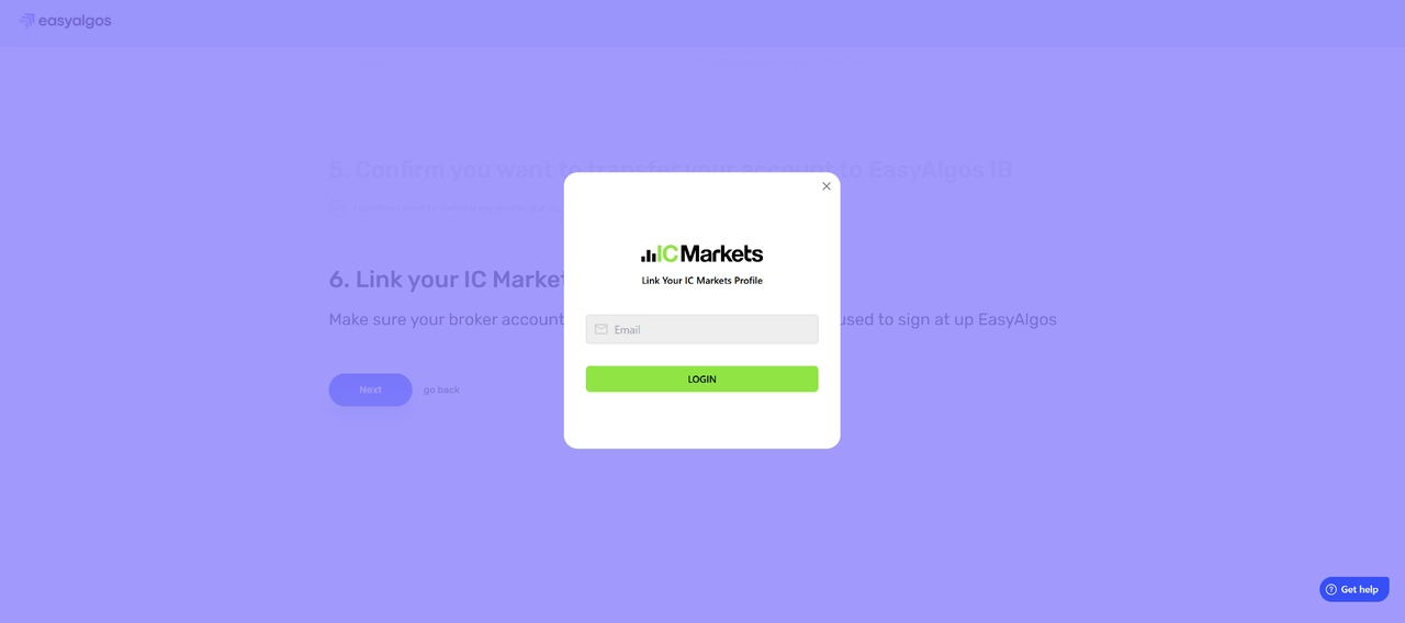 There are different reasons why your broker account may not be eligible for EasyAlgos AI. If that’s the case, please reach out to IC Markets’ partners team at partners@icmarkets.com or IC Trading's partners team at partners@ictrading.com to find out why, and what you can do about it.